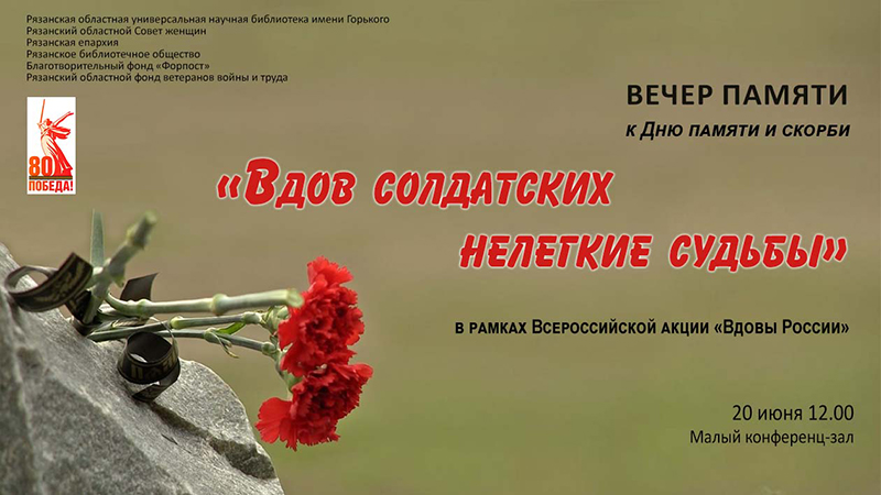 В рамках Всероссийской акции «Вдовы России» в Рязанской областной библиотеке им. Горького состоится вечер памяти «Вдов солдатских нелегкие судьбы».