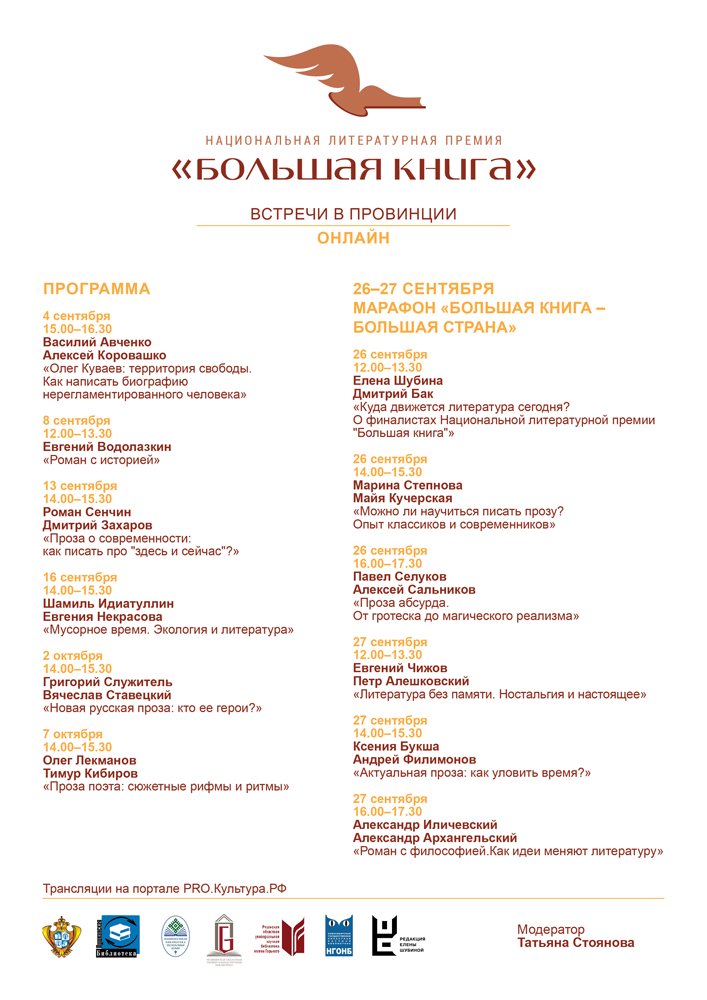8 сентября в 12.00 состоится вторая встреча в рамках проекта «Большая книга – встречи в провинции». Библиотекарей и читателей приглашают на диалог с Евгением Водолазкиным, лауреатом премий «Большая книга», «Ясная Поляна», литературной премии Александра Солженицына, премии Горького, национального конкурса «Книга года».