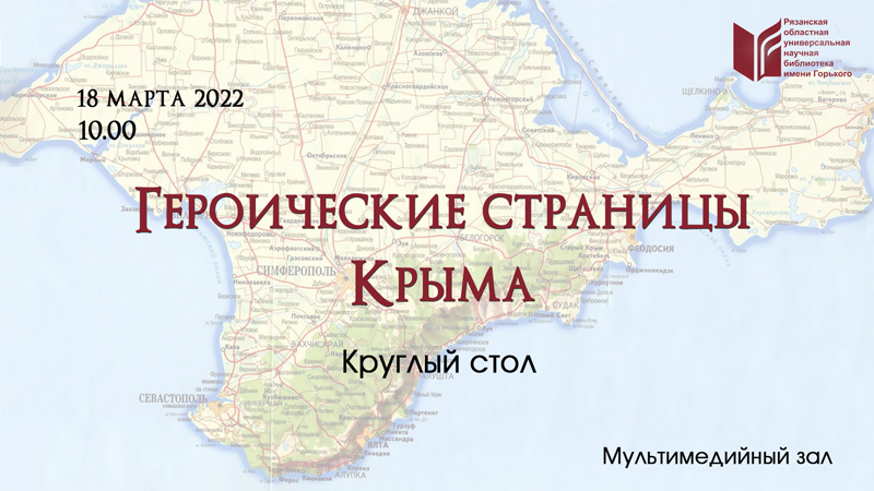 18 марта в 10.00 в мультимедийном зале библиотеки имени Горького состоится круглый стол «Героические страницы Крыма», посвященный воссоединению Крыма с Россией.