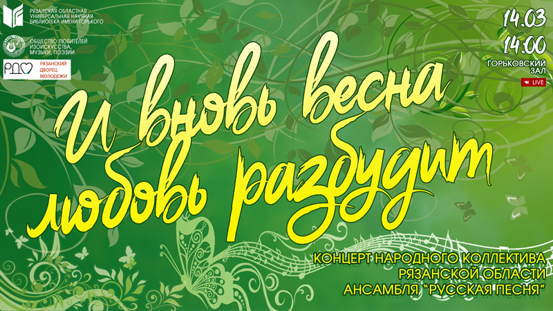 14 марта в клубе «ОЛИМП» состоится концерт Народного любительского художественного коллектива Рязанской области ансамбля «Русская песня» Дворца молодежи г. Рязани. Руководитель ансамбля – лауреат премии Рязанской области «За вклад в развитие и сохранение традиционной народной культуры Рязанской области» Татьяна Викторовна Асауленко.