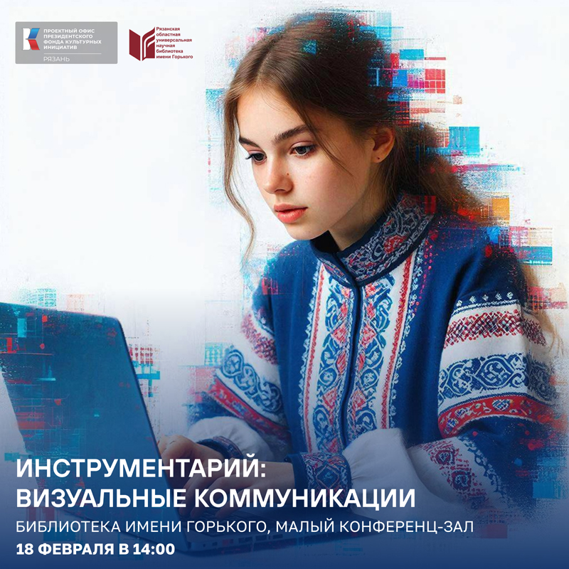 В библиотеке состоится образовательное мероприятие «Инструментарий: визуальные коммуникации», направленное на развитие надпрофессиональных навыков сотрудников учреждений культуры и общественных организаций Рязанской области.