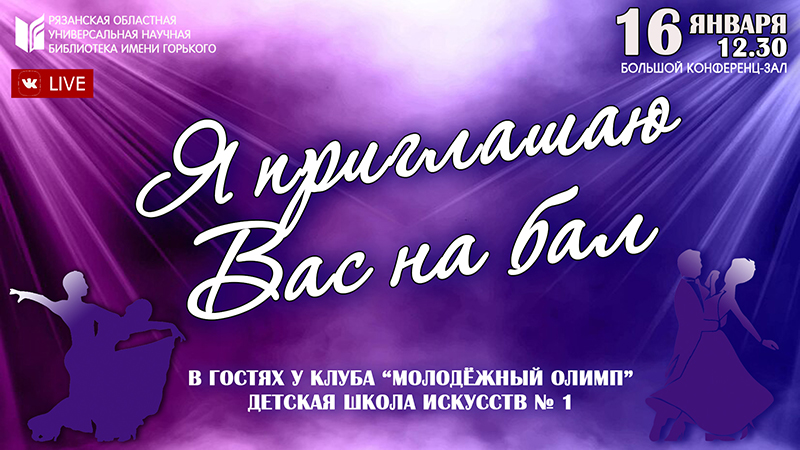 16 января в молодёжной секции клуба «ОЛИМП» состоится лекция-концерт «Я приглашаю Вас на бал», участниками которой станут учащиеся и преподаватели Детской школы искусств № 1 г. Рязани.