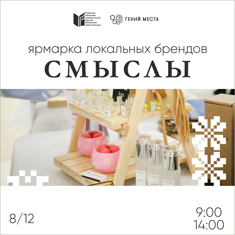 Друзья, 8 декабря с 09:00 до 14:00 в библиотеке имени Горького будет работать небольшая ярмарка локальных брендов «Смыслы».