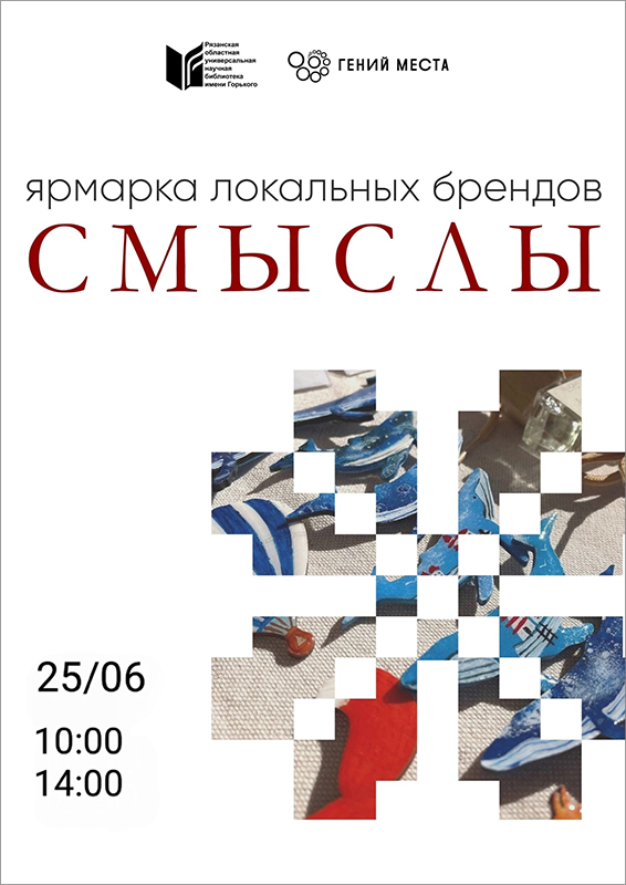 25 июня с 10:00 до 14:00 в библиотеке имени Горького будет работать небольшая ярмарка локальных брендов «Смыслы».