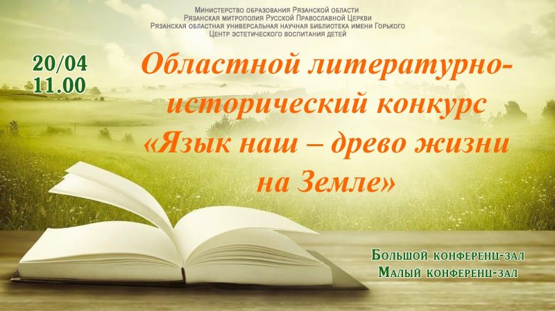 20 апреля в 11:00 в Рязанской областной универсальной научной библиотеке имени Горького состоится подведение итогов и церемония награждения победителей областного литературно-исторического конкурса «Язык наш – древо жизни на земле».