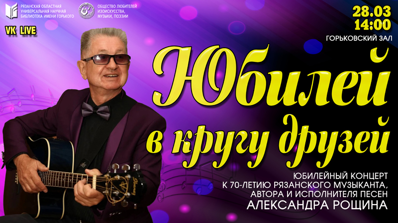 28 марта в клубе «ОЛИМП» состоится юбилейный концерт рязанского музыканта, лауреата Всероссийских и межрегиональных конкурсов и фестивалей песни Александра Рощина.