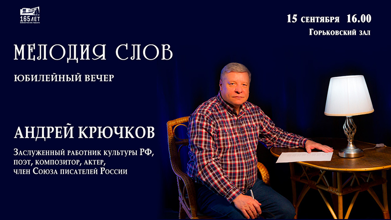 15 сентября в библиотеке имени Горького состоится юбилейный вечер актера, поэта, прозаика, драматурга, композитора Андрея Петровича Крючкова.