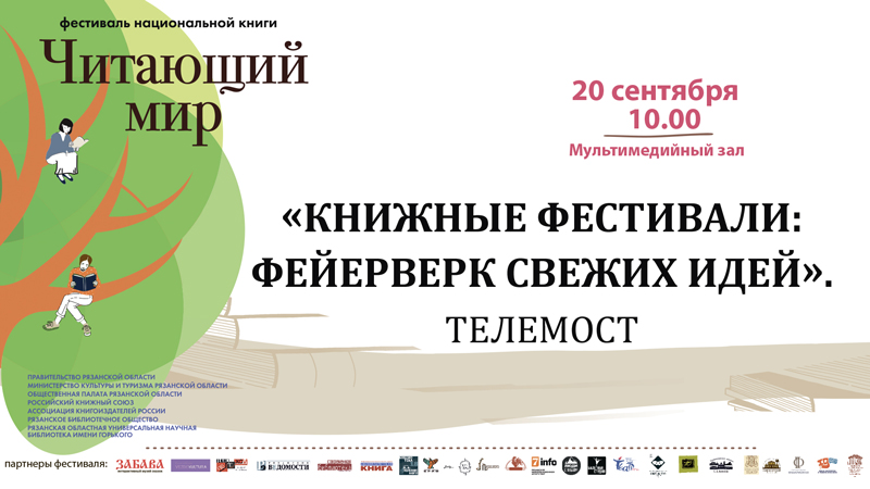 Несмотря на то, что рязанский фестиваль «Читающий мир» получил прочное признание в профессиональном мире и у читателей, нам интересен фестивальный опыт других регионов. В телемосте «Книжные фестивали: фейерверк свежих идей» примут участие библиотеки Крыма, Костромы, Коми и Удмуртской Республик, Тюмени, Ульяновска и др.