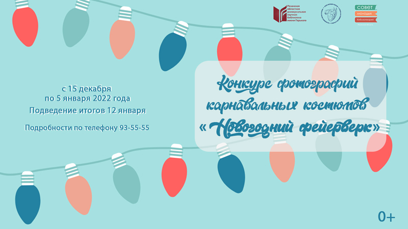 Библиотека им. Горького, областной Совет женщин и Совет молодых библиотекарей Рязанской области объявляют конкурс фотографий карнавальных костюмов «Новогодний фейерверк».
