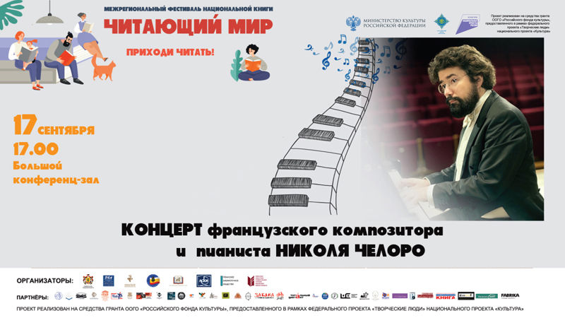 В рамках фестиваля «Читающий мир» и культурно-просветительского проекта «Щит Персея» состоится концерт французского композитора и пианиста Николя Челоро.