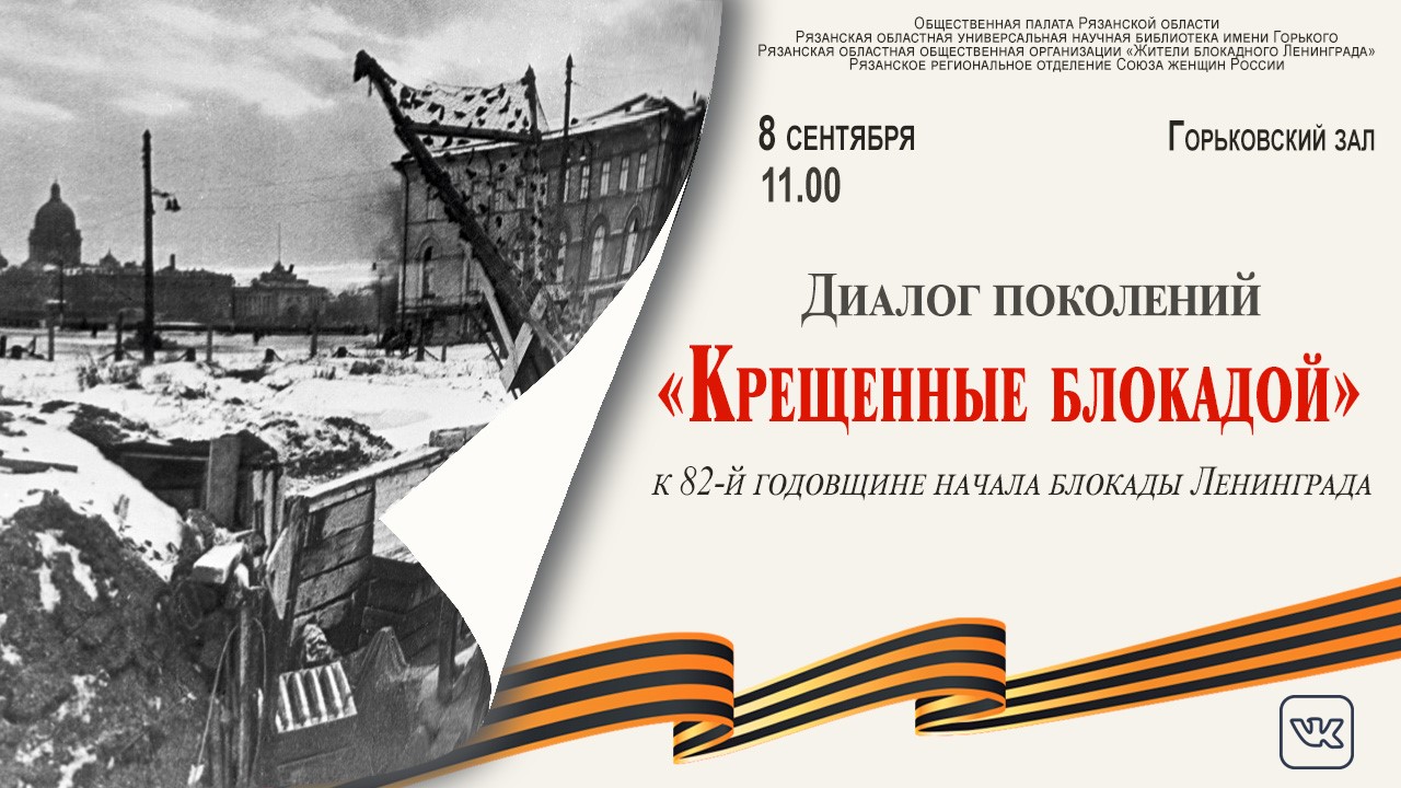 8 сентября в 11:00 в Рязанской областной универсальной научной библиотеке имени Горького состоится памятное мероприятие, посвященное 82-й годовщине начала блокады Ленинграда.
