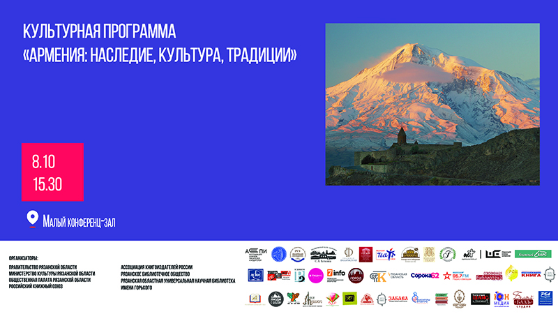 Представители регионального отделения общероссийской общественной организации «Союз Армян России» в Рязанской области познакомят гостей встречи с культурным наследием и традициями древней Армении. В творческой встрече примет участие танцевальный ансамбль «Назани» и прозвучит музыка армянского дудука.