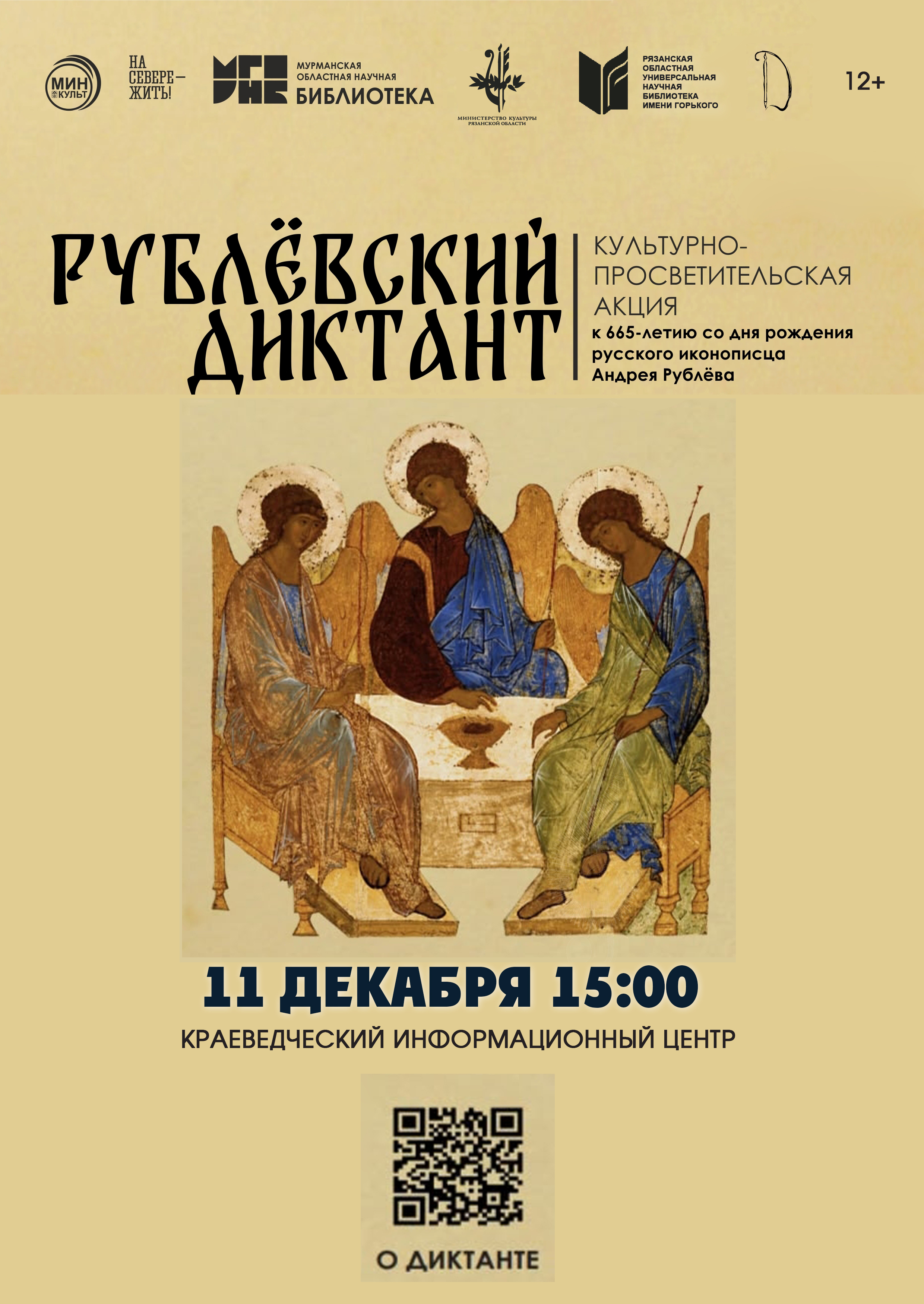 11 декабря 2025 Рязанская областная универсальная научная библиотека имени Горького присоединится к культурно-просветительской акции «Рублёвский диктант», инициатором которой выступила Мурманская областная научная библиотека.