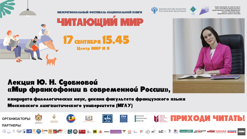В рамках фестиваля «Читающий мир» и культурно-просветительского проекта «Щит Персея» состоится публичная лекция «Мир франкофонии в современной России» Юлии Сдобновой, кандидата филологических наук, декана факультета французского языка Московского лингвистического университета.