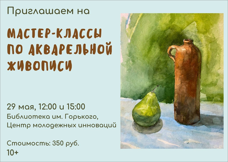 Библиотека имени Горького и творческая мастерская «Шмель» приглашают на мастер-классы по акварельной живописи, которые состоятся 29 мая. Занятия проведет преподаватель студии «Шмель», известный рязанский художник, член Союза художников России Абакумов Сергей Викторович.