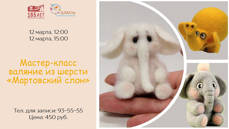 Обучать технике сухого валяния из шерсти нас будет директор и преподаватель студии «Шмель» Юлия Незаленова. На мастер-классах вы сможете познакомиться с этой популярной техникой рукоделия и сделать оригинальную поделку из валянной шерсти своими руками. Темой ближайших занятия станет - «Мартовский слон». На мастер-классах каждый участник вместе с преподавателем сможет сделать оригинальную поделку своими руками.
