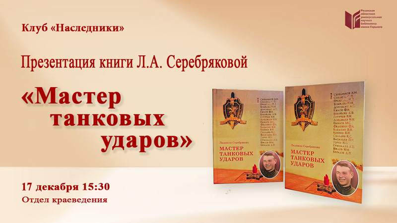Данное мероприятие для членов молодежного клуба краеведов «Наследники» при РОУНБ имени Горького посвящено выходу 2-го издания книги о Герое Советского Союза Андрее Михайловиче Серебрякове.
