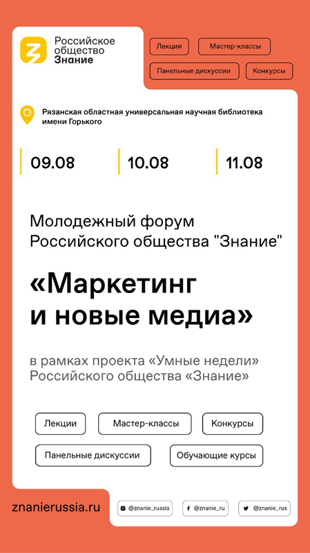 Российское общество «Знание» проведет в Рязани молодежный форум «Маркетинг и новые медиа»
