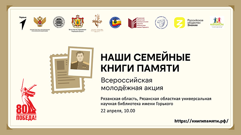 В период с 3 по 30 апреля 2025 года, в канун юбилея Победы, Всероссийская молодежная акция «Наши семейные книги памяти» пройдет во всех без исключения субъектах Российской Федерации. Площадками проведения акции станут тысячи школ, колледжей, педагогических университетов нашей страны, также в республиках: Беларусь, Молдова, Абхазия, Армения, Грузия, Казахстан, Кыргызстан, Узбекистан, Таджикистан, Туркменистан, в Китайской Народной Республике и не только.