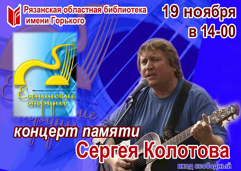 В клубе «ОЛИМП» состоится вечер, посвященный памяти замечательного музыканта, автора-исполнителя, директора фестиваля авторской песни и поэзии «Есенинские струны» Сергея Колотова.