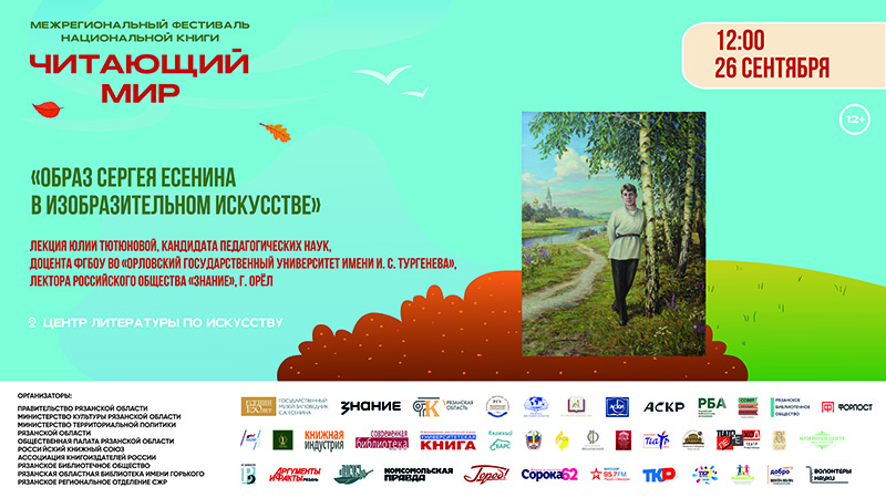 В рамках Межрегионального фестиваля национальной книги «Читающий мир» в Центре литературы по искусству состоится лекция Ю. Тютюновой «Образ Сергея Есенина в изобразительном искусстве».