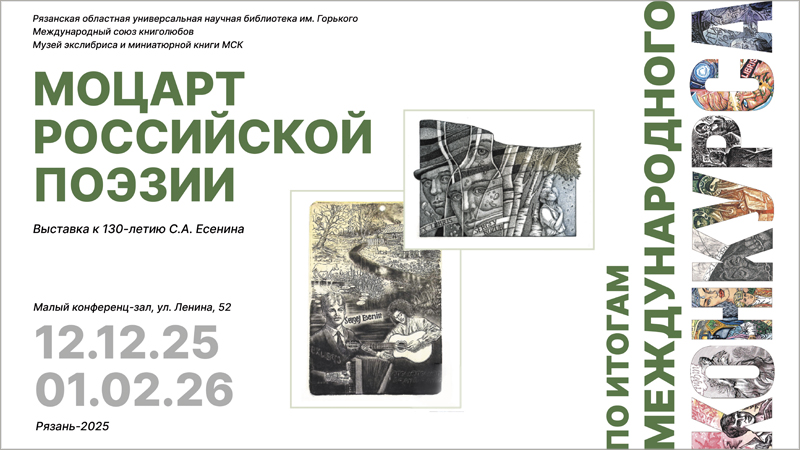 На выставке представлены лучшие работы одноименного международного конкурса экслибриса, проведенного в 2025 году Международным союзом общественных организаций книголюбов, Музеем экслибриса и миниатюрной книги Международного союза книголюбов, Международным центром искусств «Главный проспектЪ». Конкурс посвящен 130-летию со дня рождения Сергея Александровича Есенина.