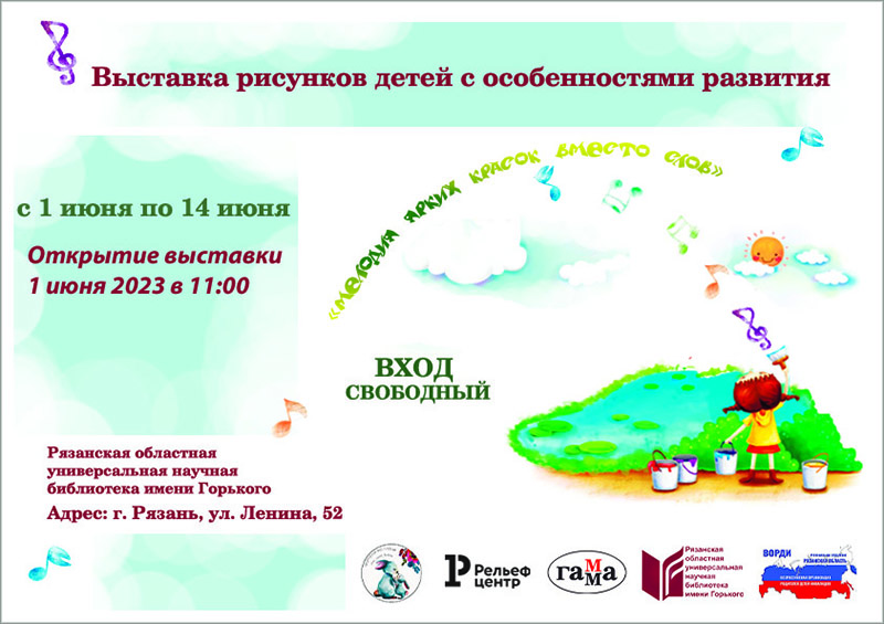 В День защиты детей в Гербовом зале библиотеки в 11:00 пройдет открытие выставки рисунков детей с особенностями развития «Мелодия ярких красок вместо слов».