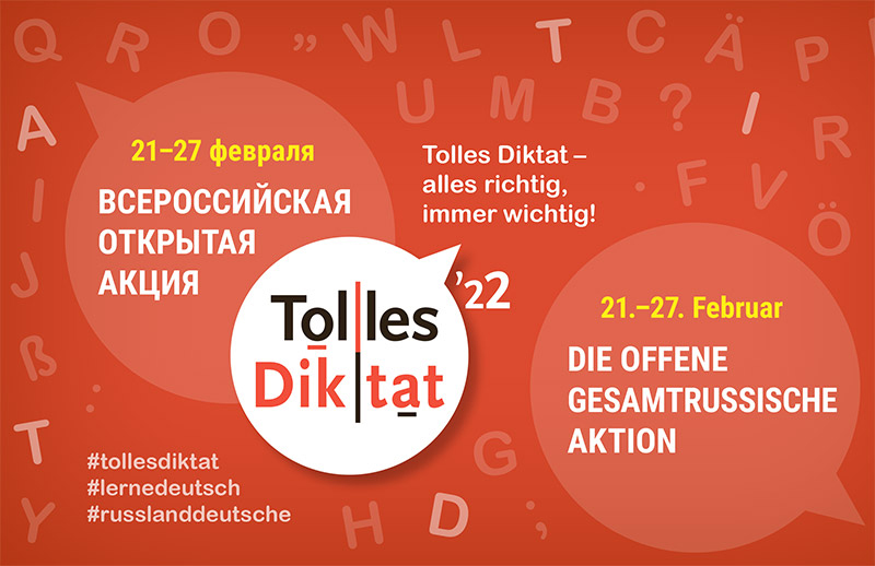 С 21 по 27 февраля 2022 года пройдет ежегодная Всероссийская открытая акция «Tolles Diktat», которая проводится по инициативе общественных организаций российских немцев с целью популяризации немецкого языка и развития культуры грамотного письма на немецком языке. Акция приурочена к Международному дню родного языка, который учрежден ЮНЕСКО в 1999 году и отмечается 21 февраля.