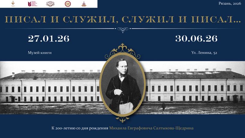 В 2026 году исполняется 200 лет со дня рождения великого русского писателя Михаила Евграфовича Салтыкова-Щедрина. К этой знаменательной дате Рязанская областная универсальная научная библиотека имени Горького совместно с Российским государственным историческим архивом, Государственным архивом Рязанской области и Рязанским историко-архитектурным музеем-заповедником при поддержке Министерства культуры Рязанской области представляет выставочный проект «Писал и служил, служил и писал», посвящённый важному периоду жизни писателя – службе в Рязанской губернии.