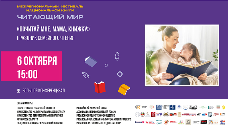 В рамках Межрегионального фестиваля национальной книги "Читающий мир" 6 октября в 15.00 в большом конференц-зале состоится праздник семейного чтения «Почитай мне, мама, книжку», ставший уже традиционным.
