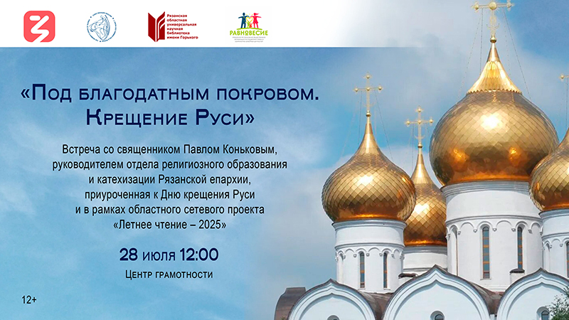 В библиотеке имени Горького состоится встреча со священником Павлом Коньковым, руководителем отдела религиозного образования и катехизации Рязанской епархии. Мероприятие пройдет в рамках областного сетевого проекта «Летнее чтение – 2025» и будет приурочено к Дню крещения Руси.