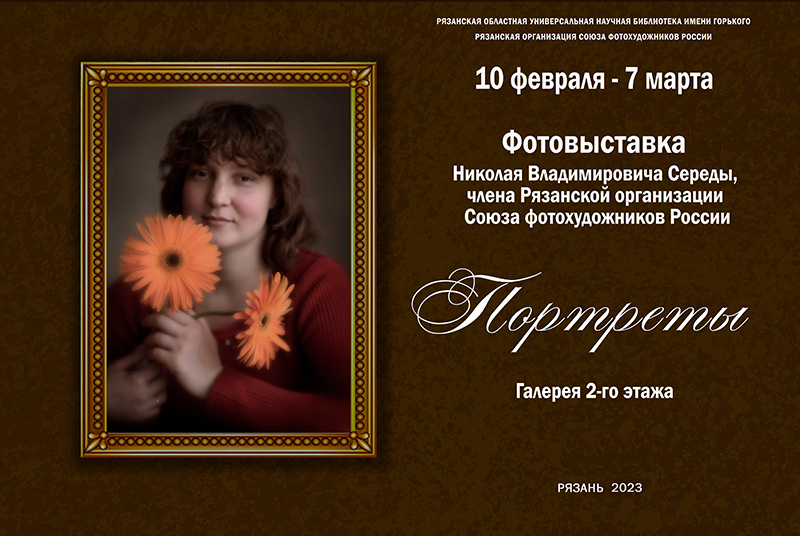 В библиотеке имени Горького состоится открытие фотовыставки «Портреты» известного рязанского фотохудожника, члена Рязанской организации Союза фотохудожников России, Николая Владимировича Середы. Николай Владимирович Середа родился в 1957 году в Узбекской ССР. В 1979 году окончил Рязанский радиотехнический институт по специальности «инженер-программист». Кандидат технических наук. С 2003 г. является членом Союза фотохудожников России. Участник многих рязанских, всероссийских и зарубежных фотовыставок. На международных фотоконкурсах награжден серебряной медалью CUP, бронзовой медалью Международной федерации фотоискусства (FIAP), почетными лентами PSA и UPI. Занял второе место на всероссийском фотоконкурсе «Семейный альбом» (2009). В 2011 году по результатам участия в международных фотоконкурсах получил звание «Художник международной федерации фотоискусства» (AFIAP). Один из организаторов и руководитель творческого объединения фотохудожников «Берега», которое с 2018 года при поддержке Фонда президентских грантов, а позднее при поддержке Президентского фонда культурных инициатив проводит всероссийские клубные фотоконкурсы «Берега». Автор двенадцати персональных выставок.