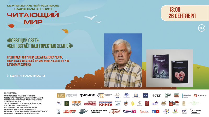 Презентация книг Владимира Хомякова состоится 26 сентября в 13:00 в центре грамотности библиотеки.