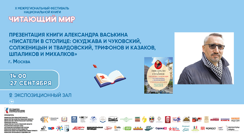 Библиотека имени Горького приглашает рязанцев и гостей города на творческую встречу с писателем Александром Васькиным. Мероприятие пройдет 27 сентября в 14:00 в рамках Межрегионального фестиваля национальной книги «Читающий мир», проводимого при поддержке Президентского фонда культурных инициатив.