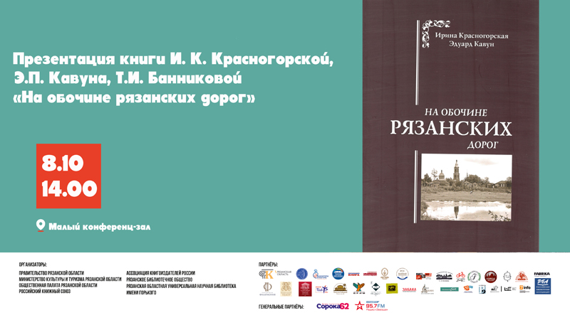 В рамках межрегионального фестиваля национальной книги «Читающий мир» состоится презентация сборника путевых очерков Ирины Константиновны Красногорской, Эдуарда Петровича Кавуна и Татьяны Ивановны Банниковой «На обочине рязанских дорог».