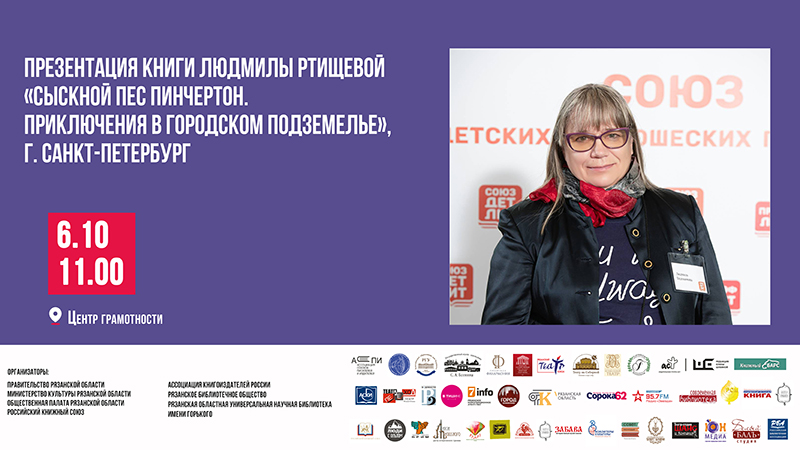 В рамках межрегионального фестиваля национальной книги «Читающий мир» состоится презентация детектива Людмилы Ртищевой «Сыскной пес Пинчертон. Приключения в городском подземелье».