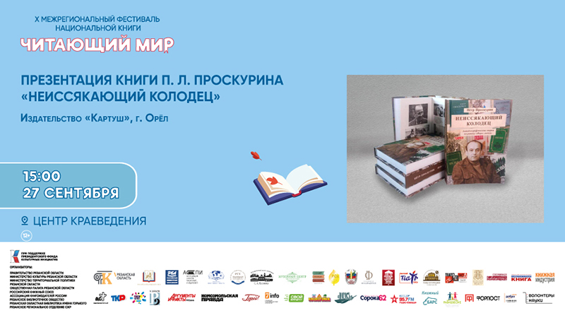 В рамках X Межрегионального фестиваля национальной книги «Читающий мир», организованного при поддержке Президентского фонда культурных инициатив, состоится презентация издания Петра Проскурина «Неиссякающий колодец».