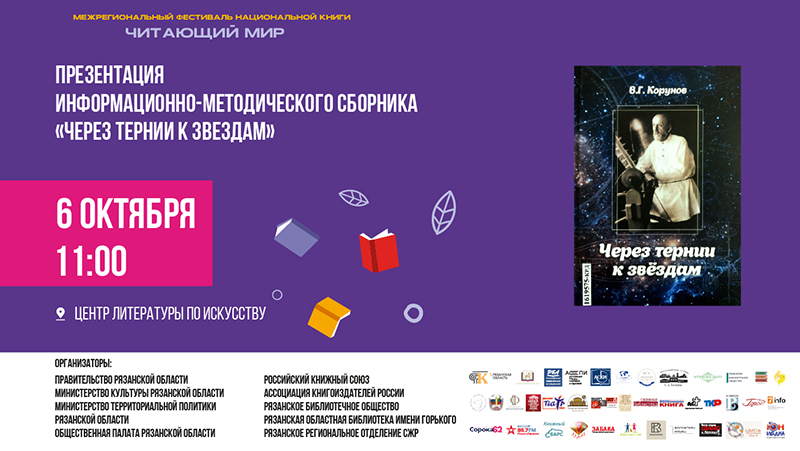 6 октября в 11:00 в библиотеке имени Горького в рамках Межрегионального фестиваля национальной книги «Читающий мир» состоится презентация информационно-методического сборника «Через тернии к звездам», посвященного 165-летию со дня рождения К.Э. Циолковского.