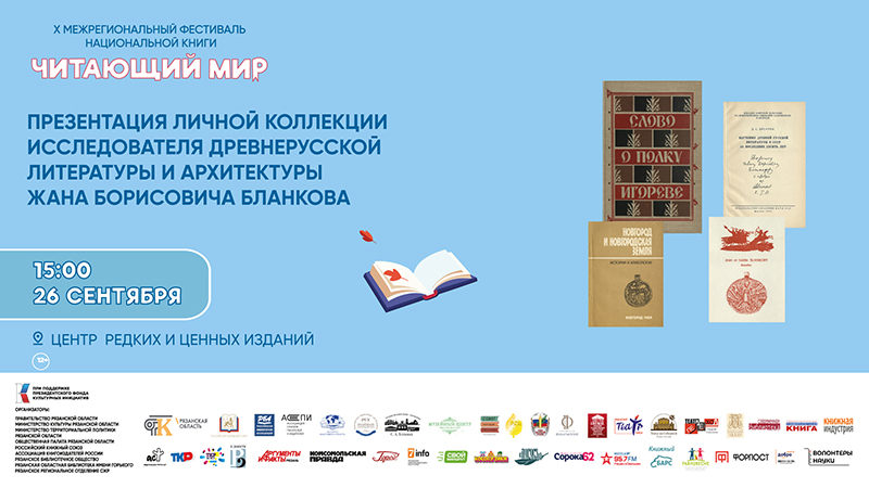 В рамках X Межрегионального фестиваля национальной книги «Читающий мир», организованного при поддержке Президентского фонда культурных инициатив, состоится презентация личной коллекции исследователя древнерусской литературы Жана Борисовича Бланкова.