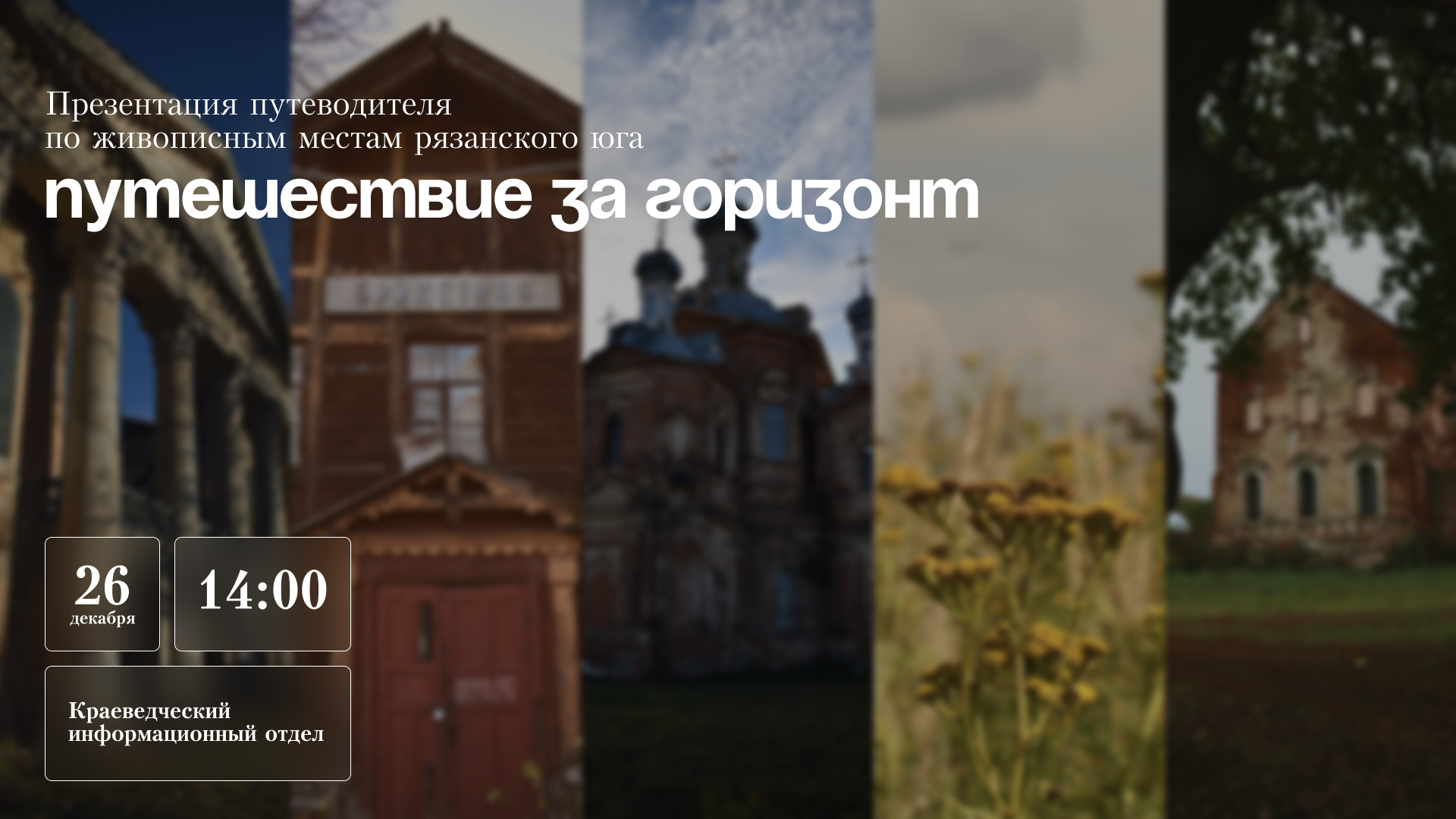 26 декабря в 14:00 состоится презентация молодёжного путеводителя по живописным местам рязанского юга «Путешествие за горизонт». Приглашаются все желающие.