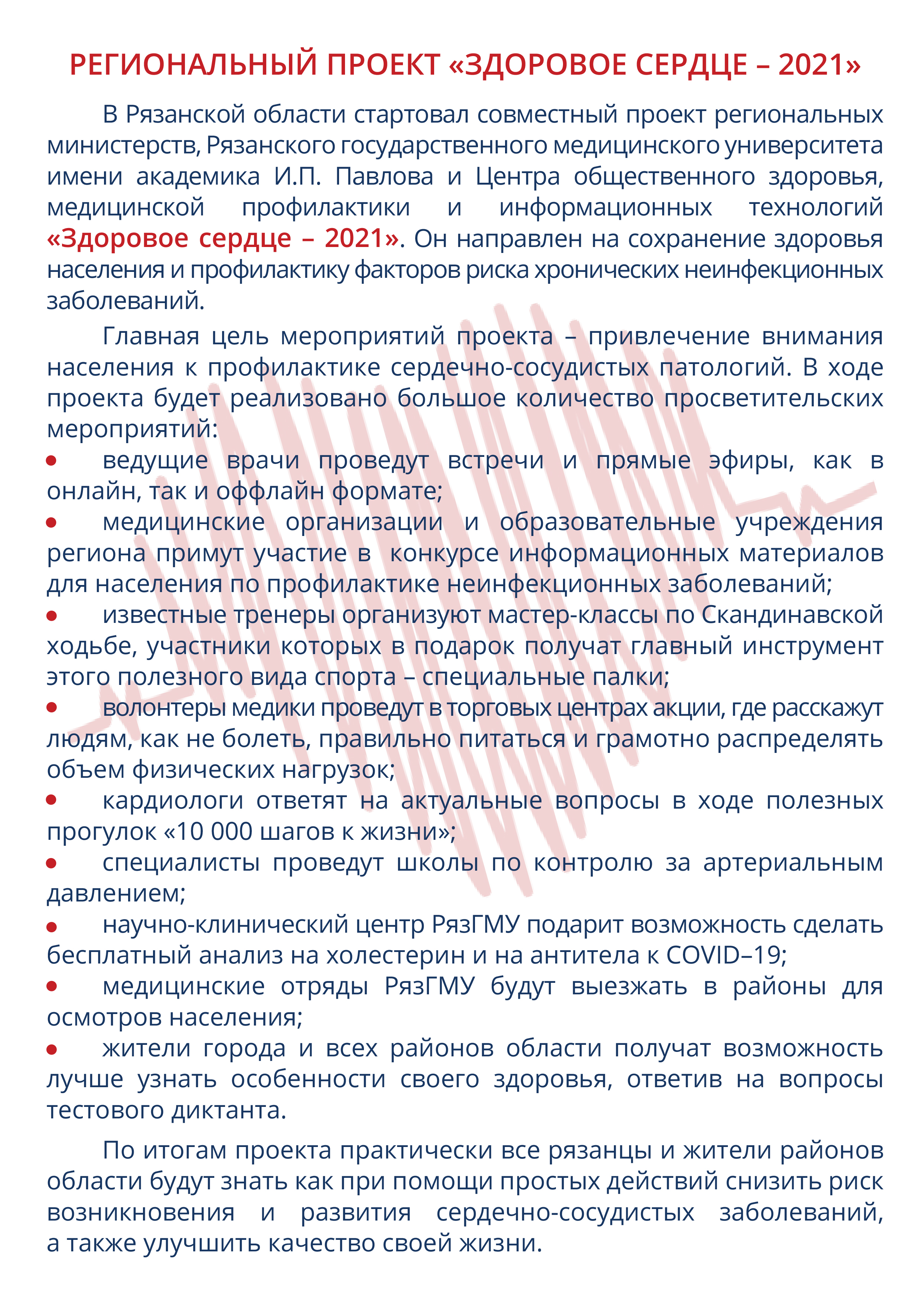 В Рязанской области стартовал проект «Здоровое сердце - 2021».