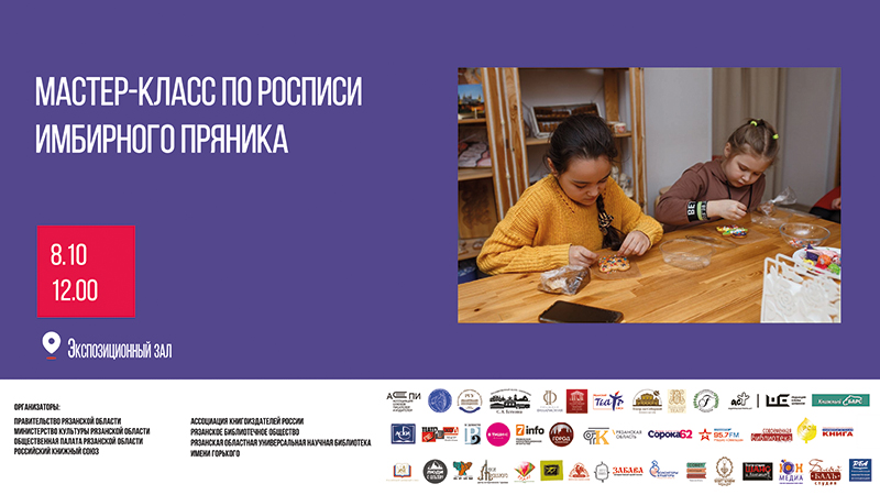 В рамках межрегионального фестиваля национальной книги «Читающий мир» состоится мастер-класс росписи имбирного пряника от музея «Галерея Пряников».