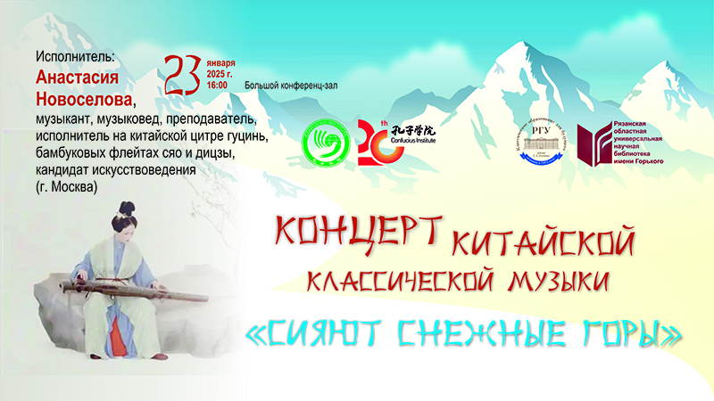 В рамках перекрестных Годов культуры России и Китая в библиотеке состоится концерт-презентация исполнительницы китайской классической музыки Анастасии Новоселовой.
