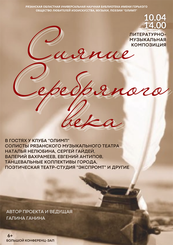 На очередной встрече клуба «ОЛИМП» будет представлена литературно-музыкальная композиция «Сияние Серебряного века».