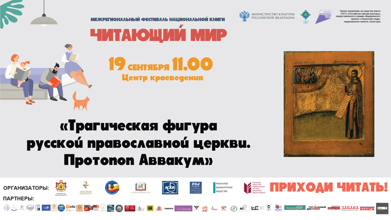 19 сентября в 11.00 в рамках Межрегионального фестиваля национальной книги «Читающий мир» в краеведческом центре библиотеки пройдет встреча со священноиереем Александром Масловым – настоятелем Рязанского православного старообрядческого храма Успения Пресвятой Богородицы.