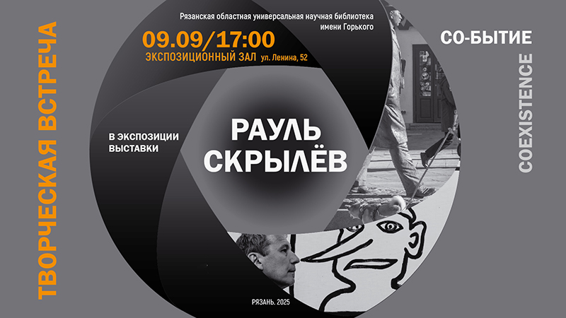 9 сентября Рязанская областная универсальная научная библиотека приглашает всех желающих в Экспозиционный зал (по адресу ул. Ленина, 52) на встречу с выдающимся московским фотохудожником Раулем Скрылевым. Встреча состоится в экспозиции персональной выставки фотохудожника «СО-БЫТИЕ/СOEXISTENCE».