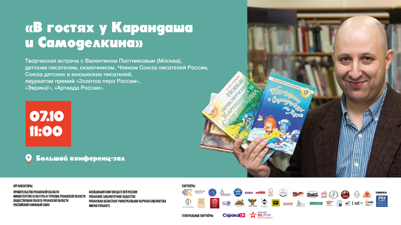 Встреча с Валентином Постниковым состоится 7 октября в 11.00 в большом конференц-зале библиотеки.