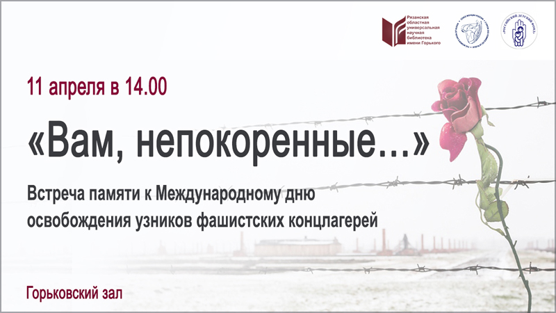 11 апреля, в Международный день освобождения узников, в библиотеке пройдет встреча с членами Рязанского регионального отделения Российского союза бывших несовершеннолетних узников фашистских концлагерей.