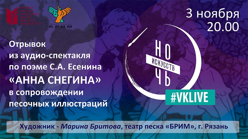 Театр песочной анимации «Брим» совместно с библиотекой имени Горького представляет спектакль по отрывку из поэмы Сергея Есенина «Анна Снегина».