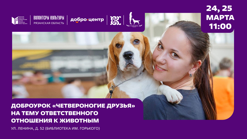 В рамках реализации проекта «Доброуроки “Четвероногие друзья”», победившего в конкурсе молодёжных проектных инициатив Рязанской области, сотрудники Добро.Центра «Волонтёры культуры» на базе Рязанской областной универсальной научной библиотеки имени Горького проводят занятия для школьников с первого по восьмой классы.